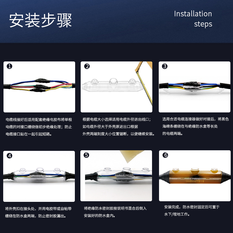 Underwater glue filling waterproof junction box IP68 submersible pump cable cable cable middle connector sealed glue injection protection box