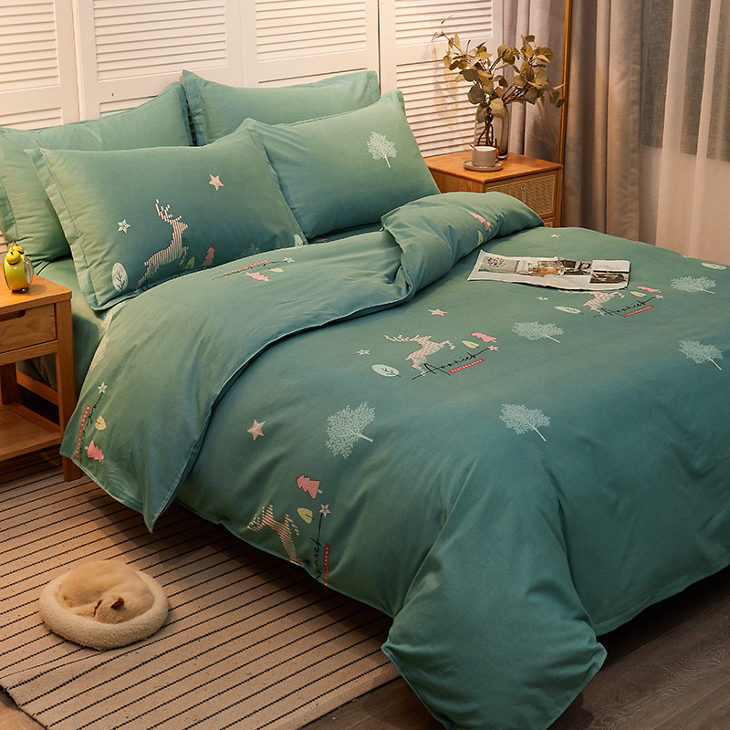 Bed Pure Cotton Four Pieces Style 100 All-cotton Linen Net Red New Brief Spring Summer Home Quilt Cover Nordic