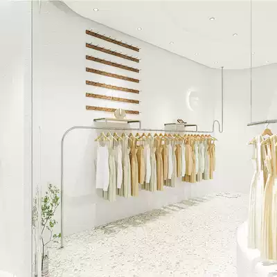 Clothing store display rack upper wall shaped stainless steel frame wall hanging side hanging custom shelf men's and women's wall hanger