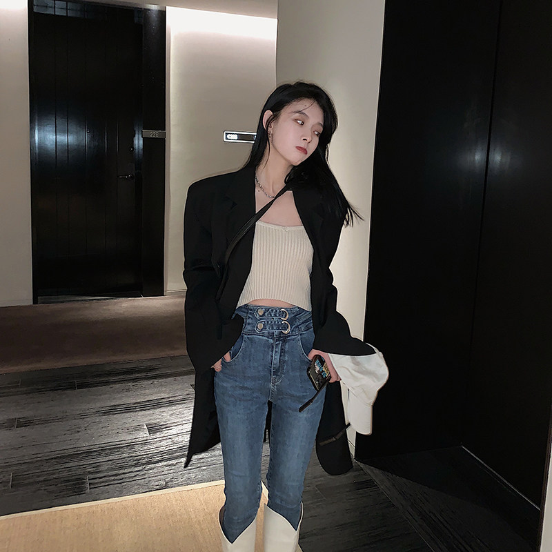 SUN11 high waist thin denim pipe pants women's spring and autumn 2021 new versatile elastic slim pencil pants