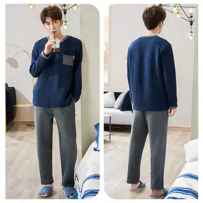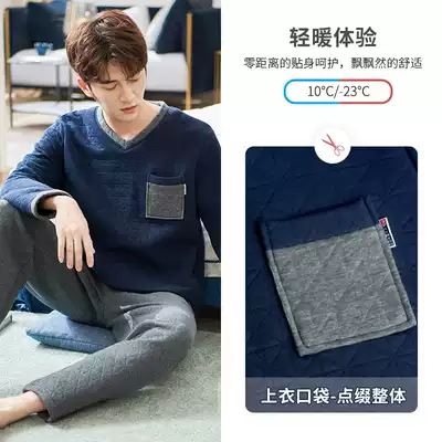 Pajamas men's thin cotton autumn and winter thickened cotton sandwich home clothes spring and autumn middle-aged dad plus cotton large size suit
