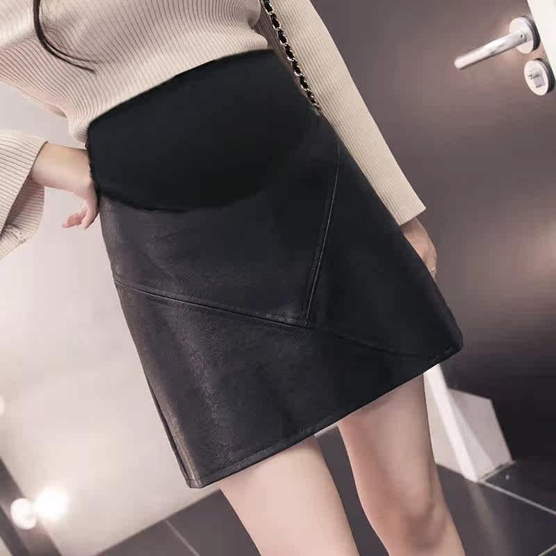 Pregnant woman half-body dress autumn winter 2021 new pregnant woman bag hip skirt Han version a word-belly leather short skirt winter dress Chauma