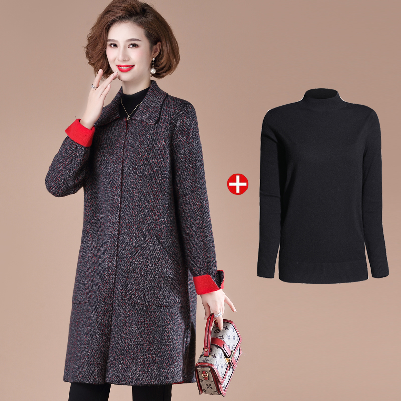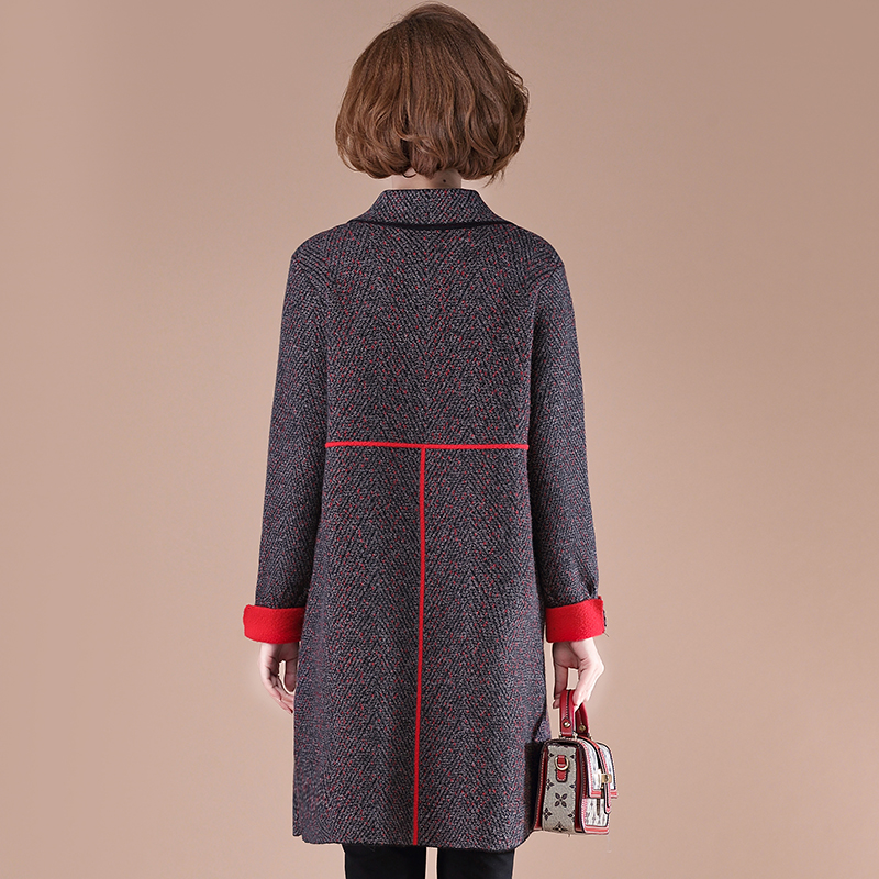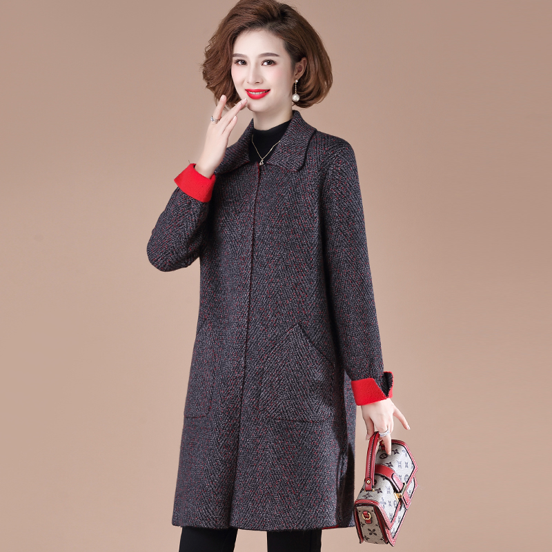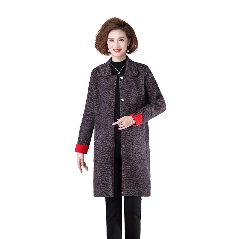 Middle-aged women's dress checkered jacket Ocean Mrs. Broads Cashmere Big Coat Plus Fat Increase for overweight Mom Spring and Autumn Double Face
