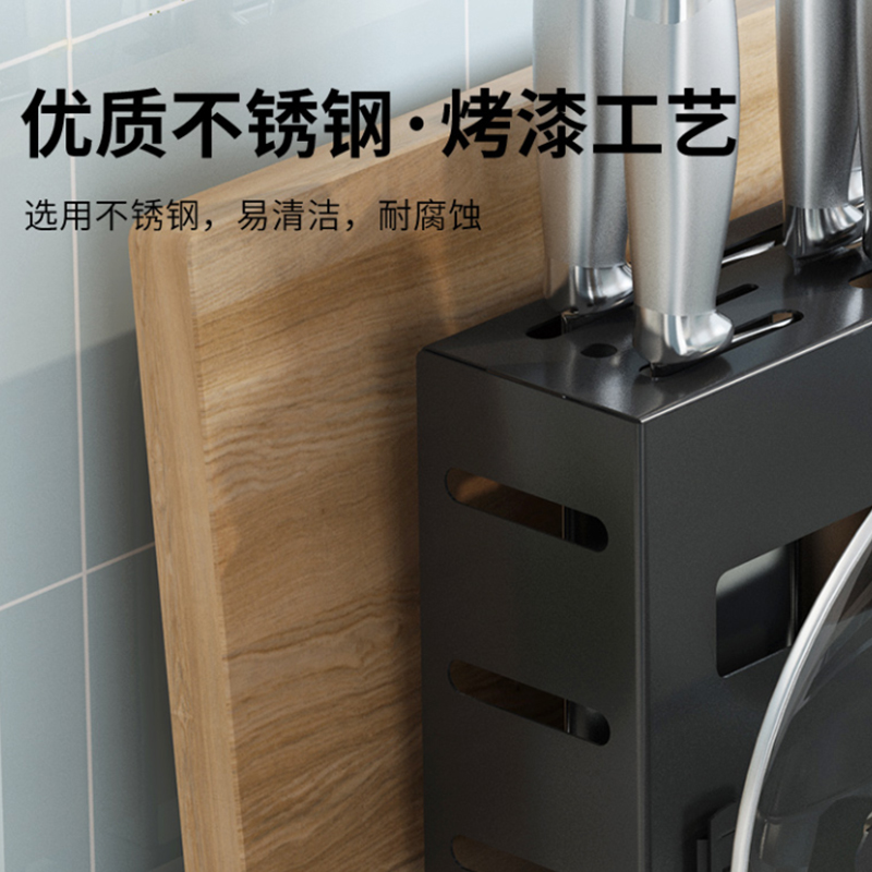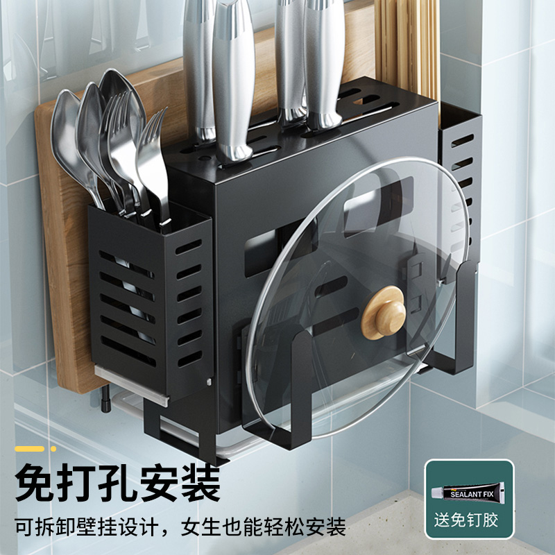 Tool holder wall-mounted free-to-punch stainless steel multifunction kitchen shelve hanging wall knife chopsticks integrated cutter containing