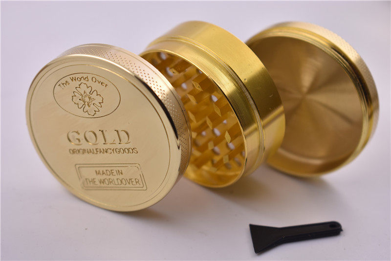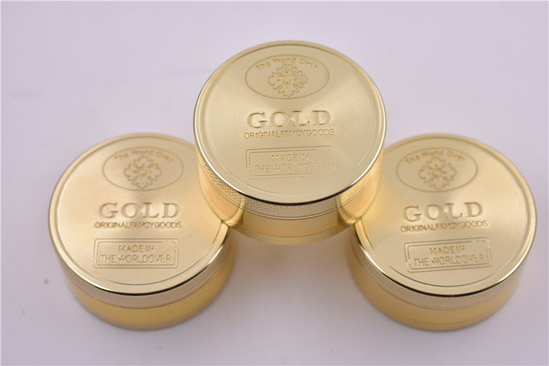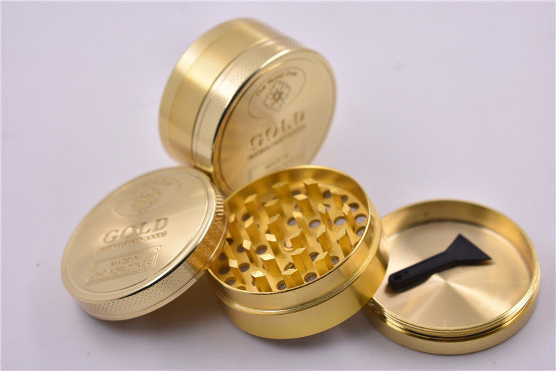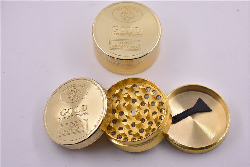 Premium GOLD gold Smoke Lighter 50mm Three layers Tobacco Herbal Medicine Grass Spice Crushing Grinding machine Tobacco Cigarette Hand Rolls Tobacco