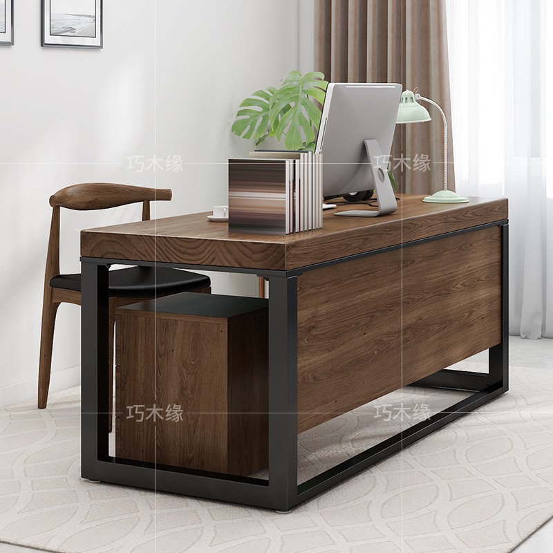 Retro Solid Wood Owner Manager Office Computer Desk Home Writing Desk With Bezel Anti-Walking Light Staff Bench-Taobao
