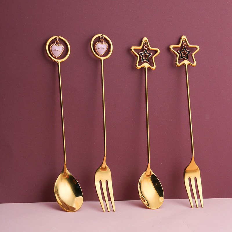 304 stainless steel coffee spoon small pendant long handle water cup stirring spoon dessert salad fruit fork ins creative cute