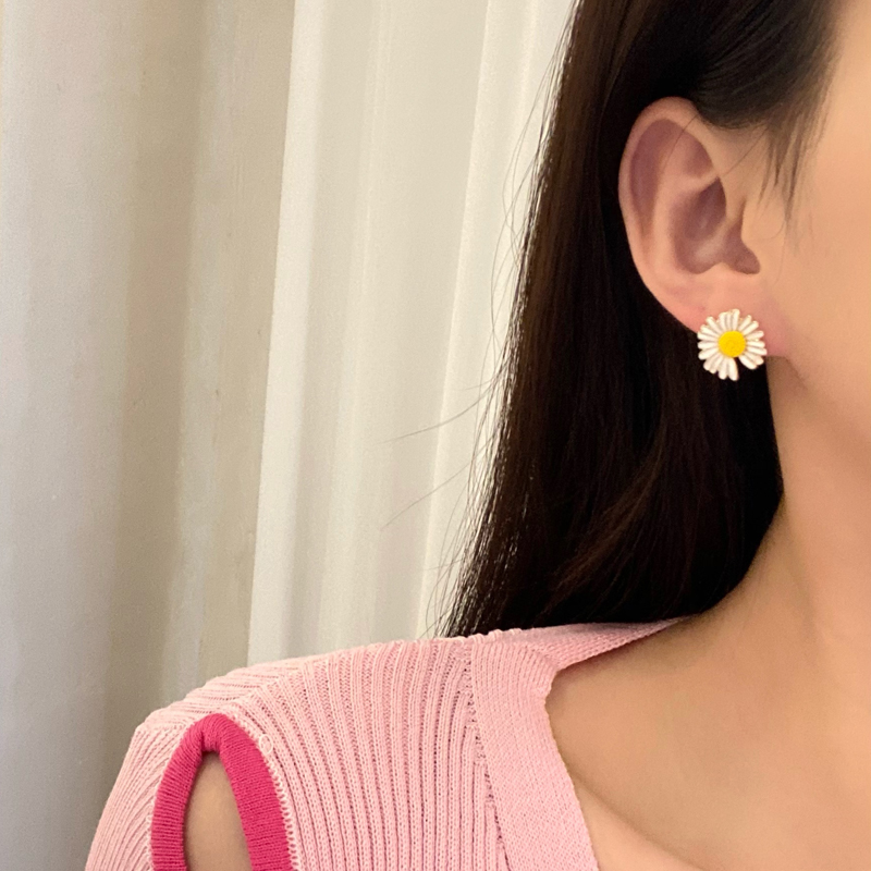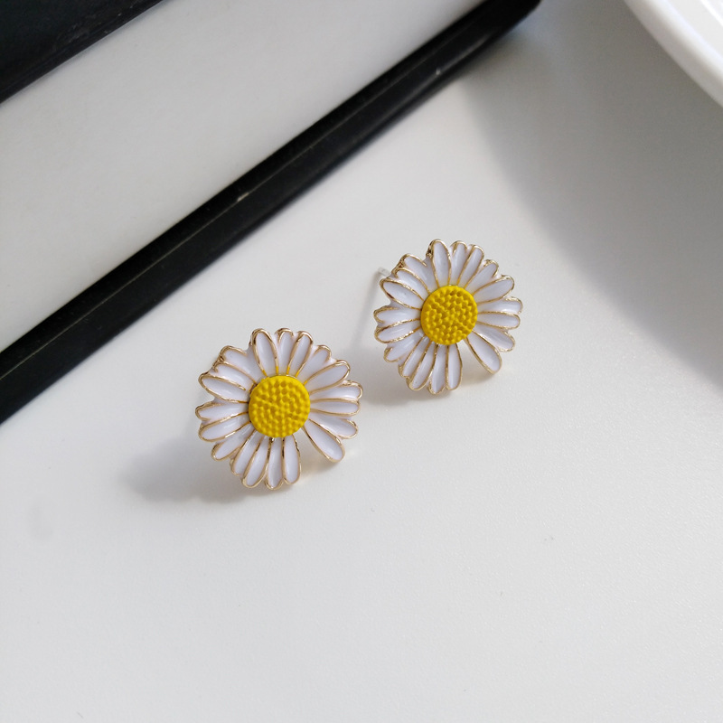 S925 silver needle sweet and small fresh flower ear decoration brief small daisy earrings Earrings cute girl ear clip student 1354