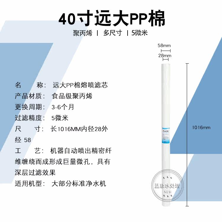 Water purifier filter element pp cotton 20 inch 10 inch 40 inch meltblown security general polypropylene over 5 micron reverse osmosis