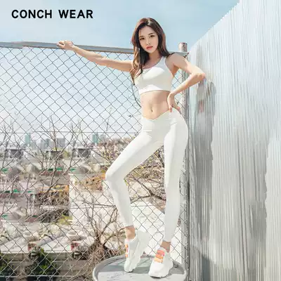 Yoga pants women hip nude professional quick-drying 9 points belt cross gym leggings Korean CONCHWEAR