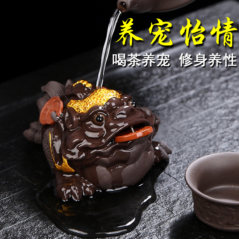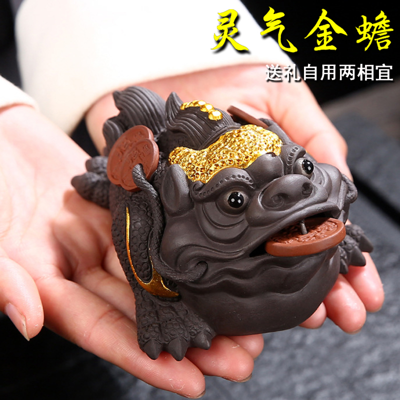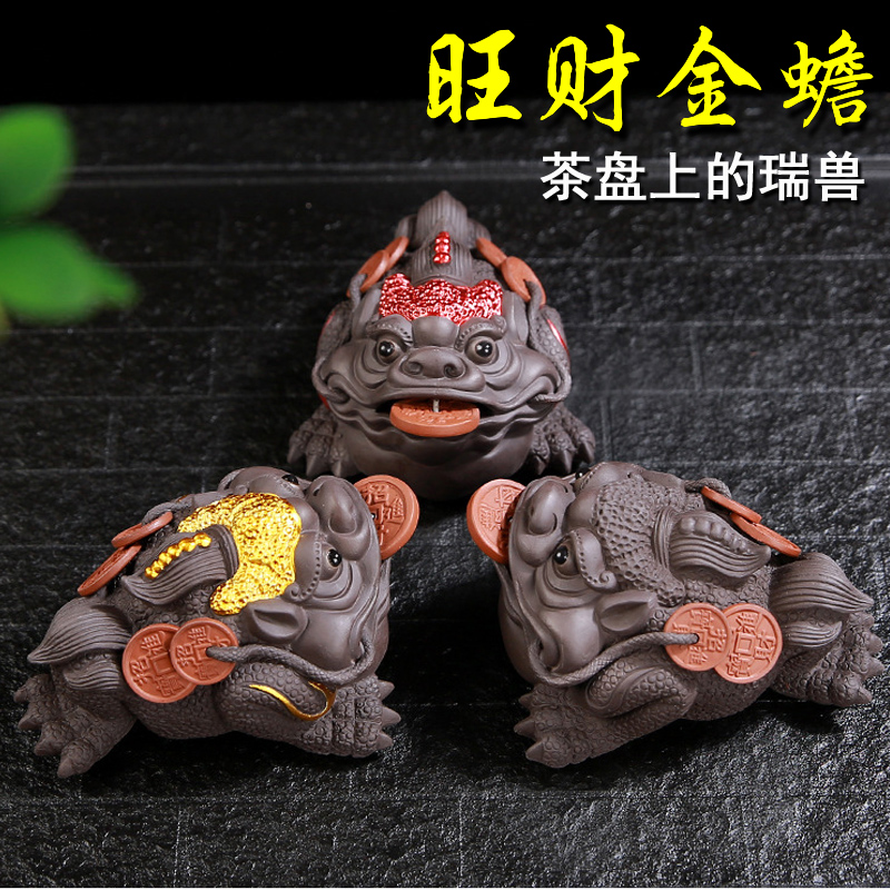 Purple sand tea pet retention tripedal piece gold toad decoration tea table gold toad creative angle