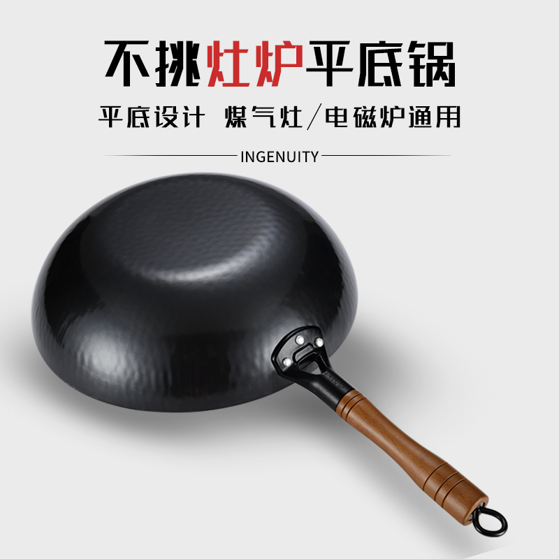 Handmade old iron boiler household cooking cooker non-sticky cooker without coating electromagnetic oven gas stove for wood cover fried cooker