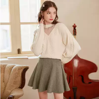 Xiangying a-line skirt skirt female 2021 autumn and winter new fashion Korean version of wild umbrella skirt thin high waist small short skirt