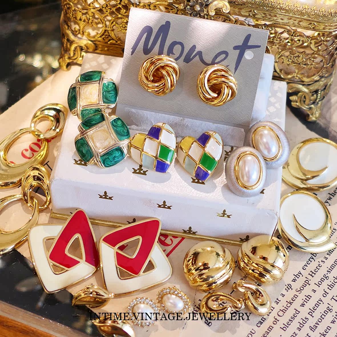 Milky white white beige light gray dark gray gray silver black orange red rose red baby details have upper ear map details (VINTAGE sold non-refundable and non-exchangeable) A-matte gold ear pins