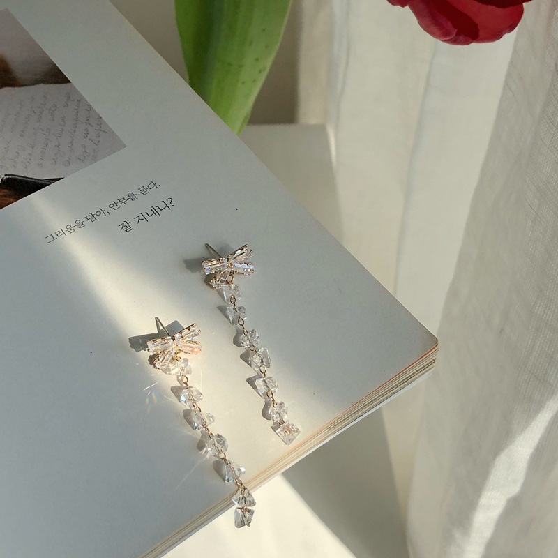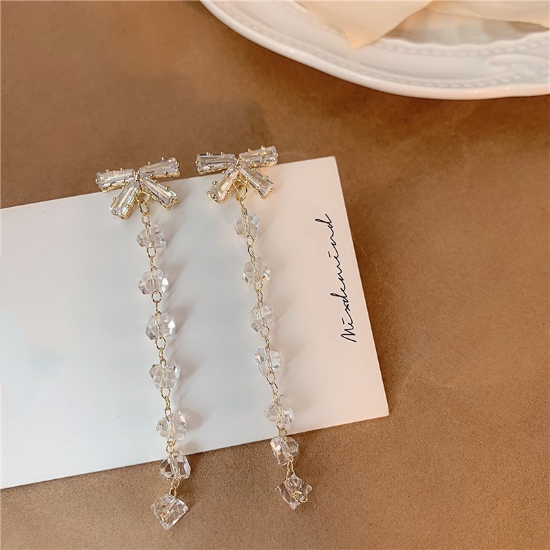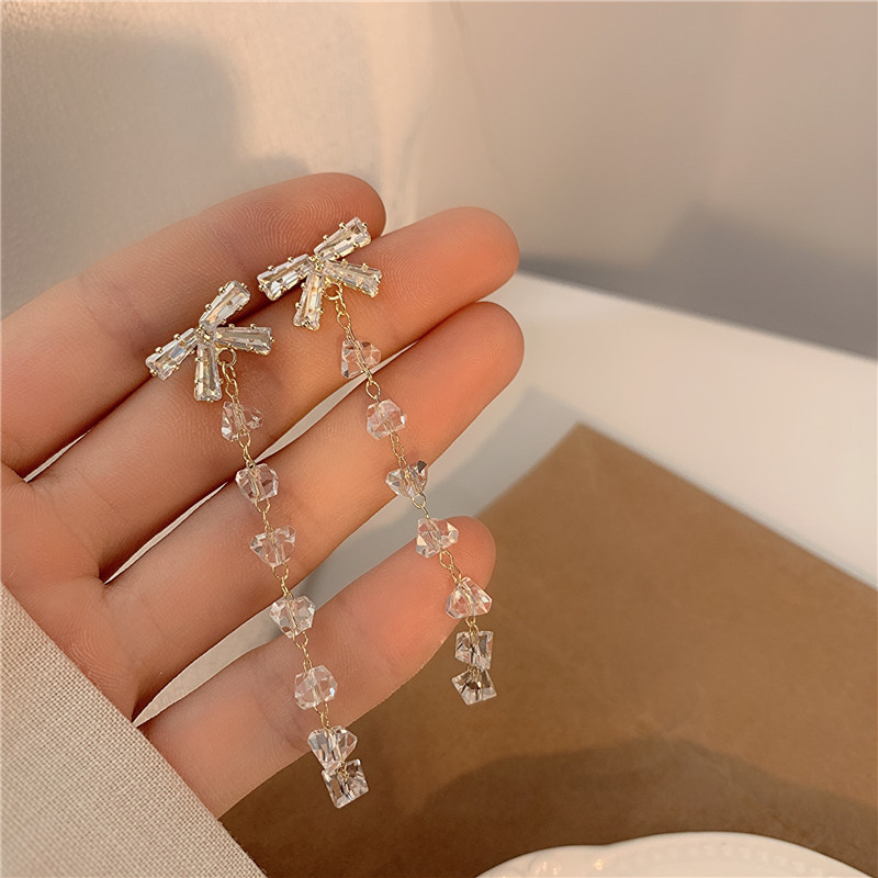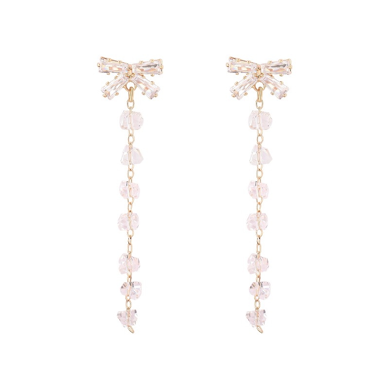925 silver needle net red temperament inlaid zircon K-shaped earrings bow zircon tassel earrings super fairy long earrings women