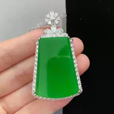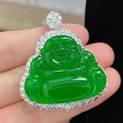 Jade Jade Buddha Gongyang Green Guanyin safe and sound card Fu melon leaves 18K gold inlaid natural A ice pendant men and women