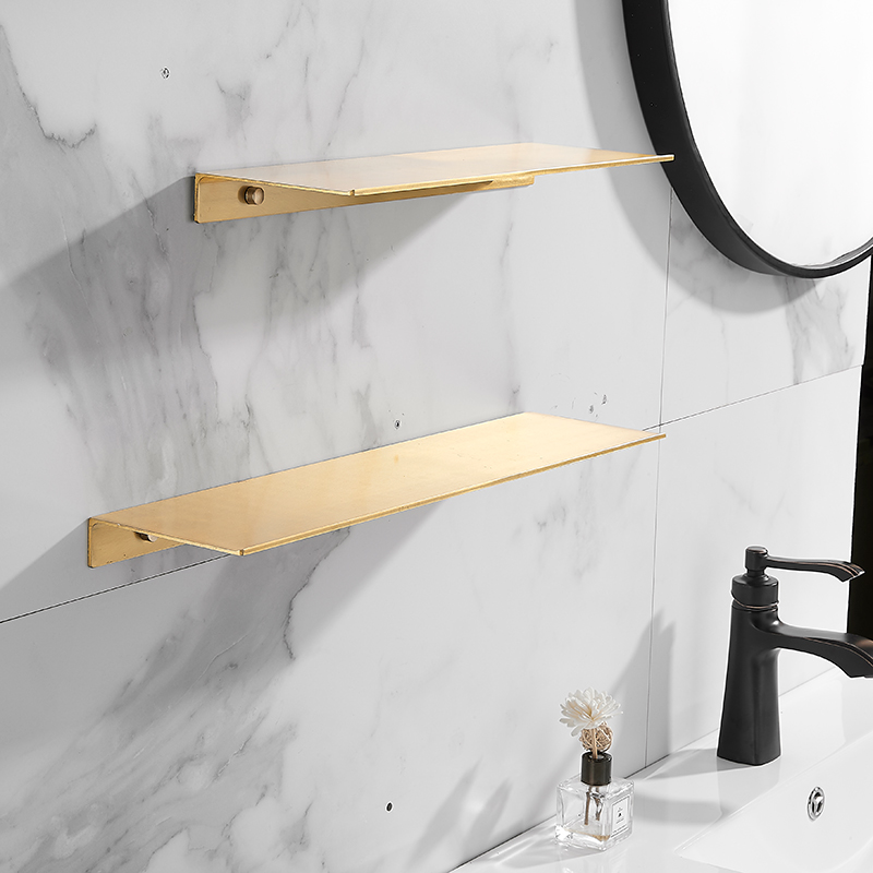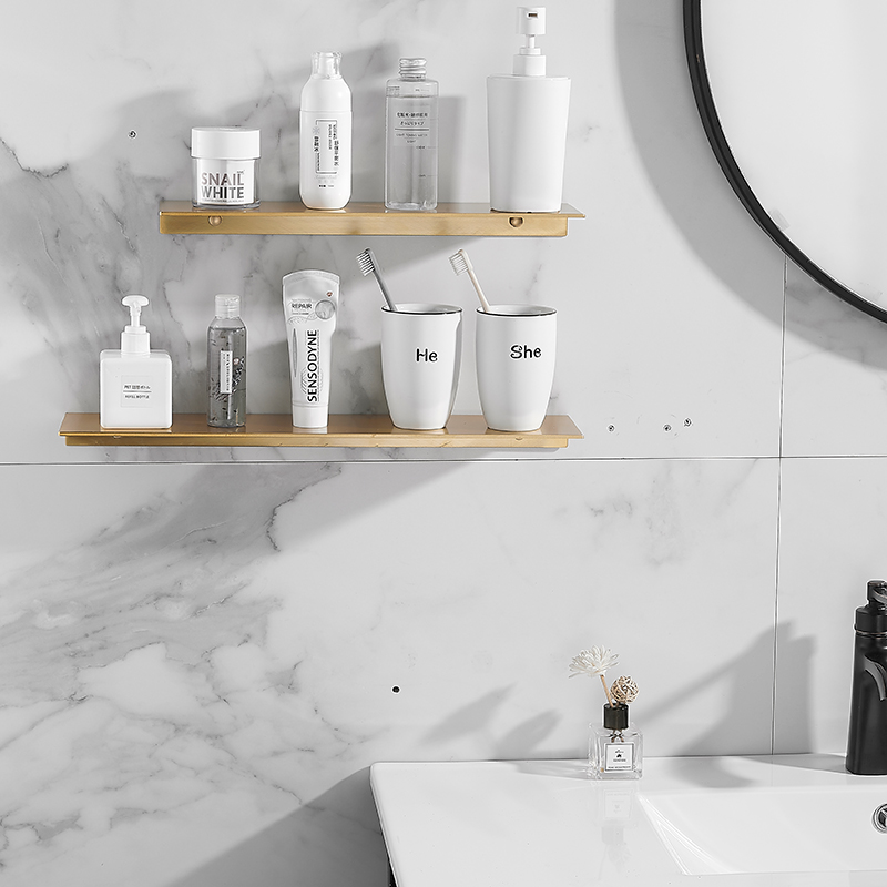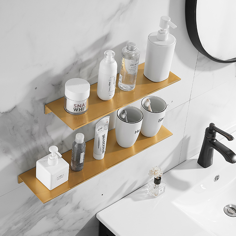 Golden Perforated Space Aluminum Bathroom Shelve Makeup Desk Bathroom Wall-mounted Mirror Front Rack Makeup Room Shower Room