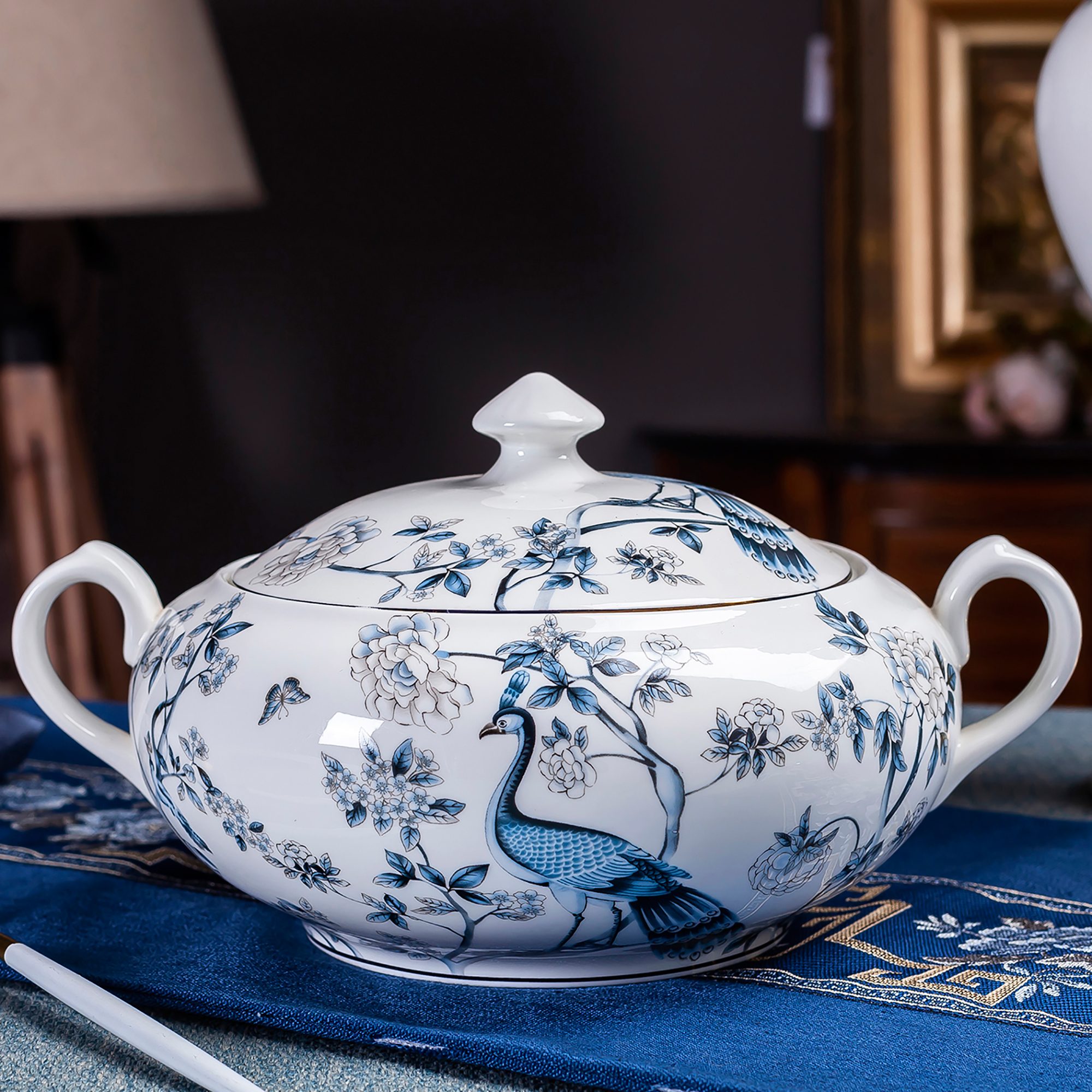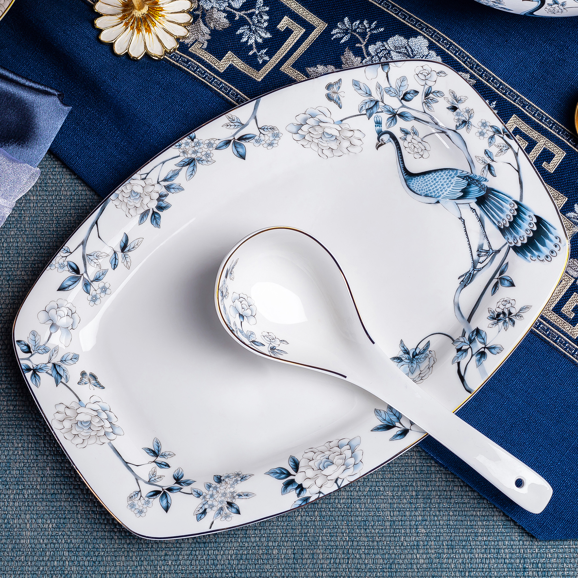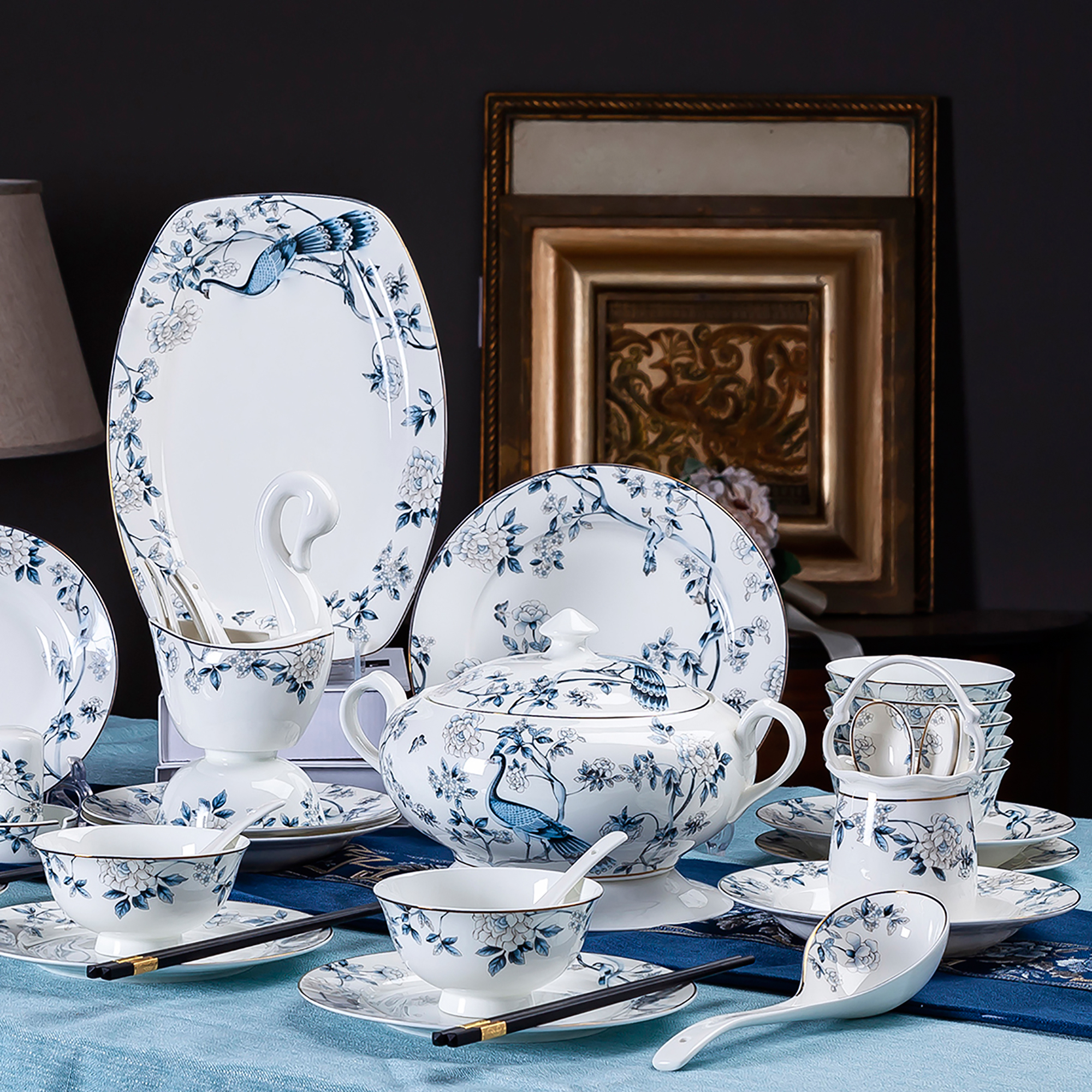 (blue peacock) 60 head cutlery sets (blue peacock) 56 head standard pans