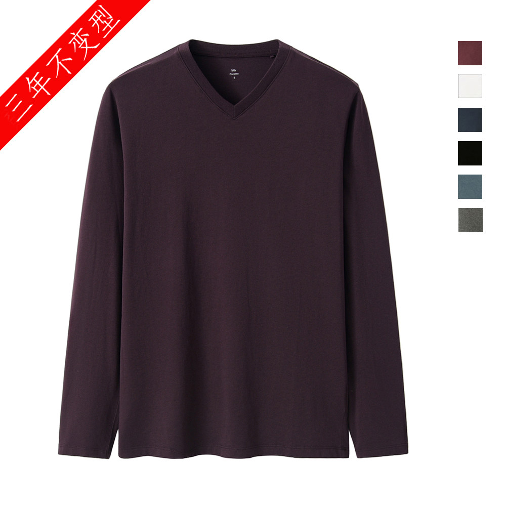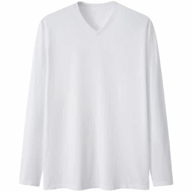Spring and Autumn V-shirt T-shirt Men with long sleeve T-shirt white blouse sweater V-collar T-shirt