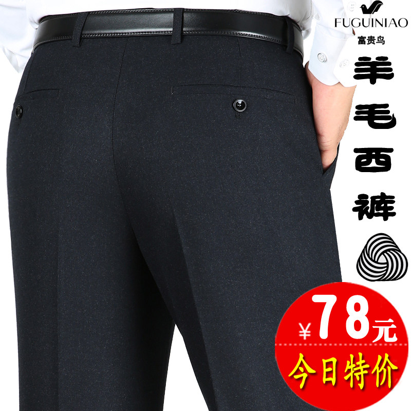 Autumn Winter Wool West Pants Rich bird Middle year High waist free of ironing thick Pants Straight Barrel Business Dad Casual Pants