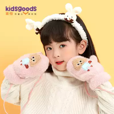 Children's gloves winter baby plus velvet thickened male and female children Lian cute infant child student wind and warm