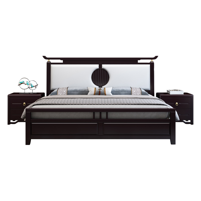 New Chinese solid wood bed Master bedroom double 1 8m 1 5 Modern Chinese light luxury Zen model room high box storage bed