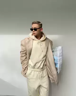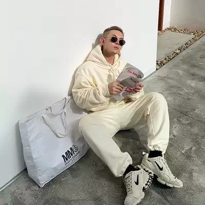 GAHKSTUDIO 2021FW private uniform premium cream hooded sweatshirt plus velvet silhouette high quality
