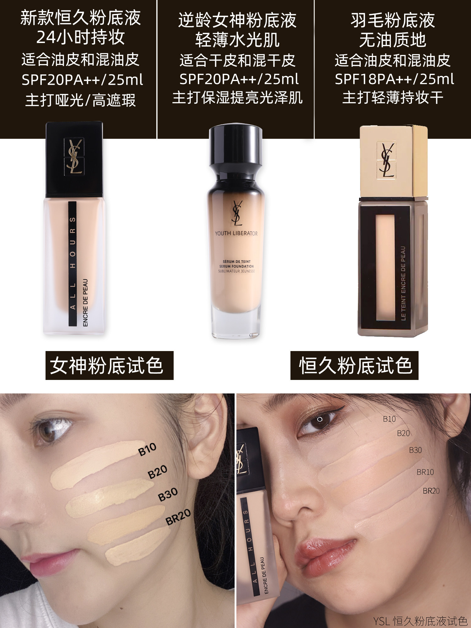 YSL Saint Laurent powder bottom liquid Hengjiu Inverse Aging Supermodel Durable No Demakeup flawless control Oil Pine Yang Shuilin Female
