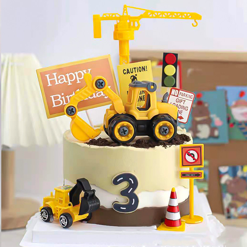 Milky white white rice white light gray card colored yellow pink engineering car 6 piece sets construction cake plugin 5 piece set jacket turmeric turmeric excavator resin excavator boy resin bulldozer large flip