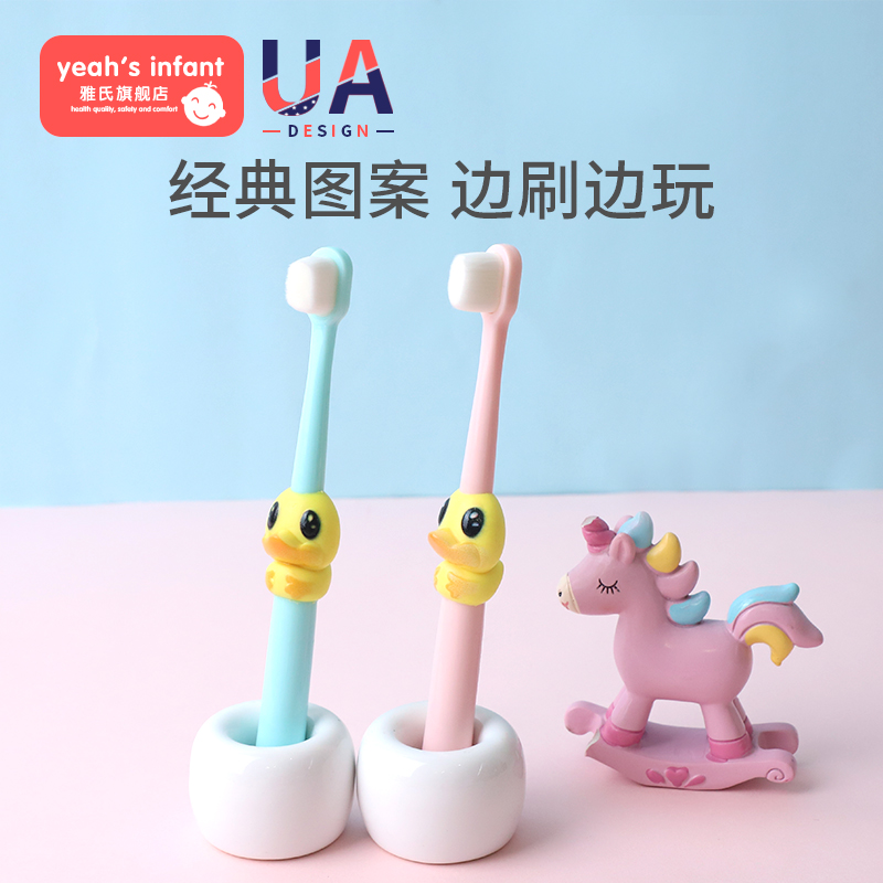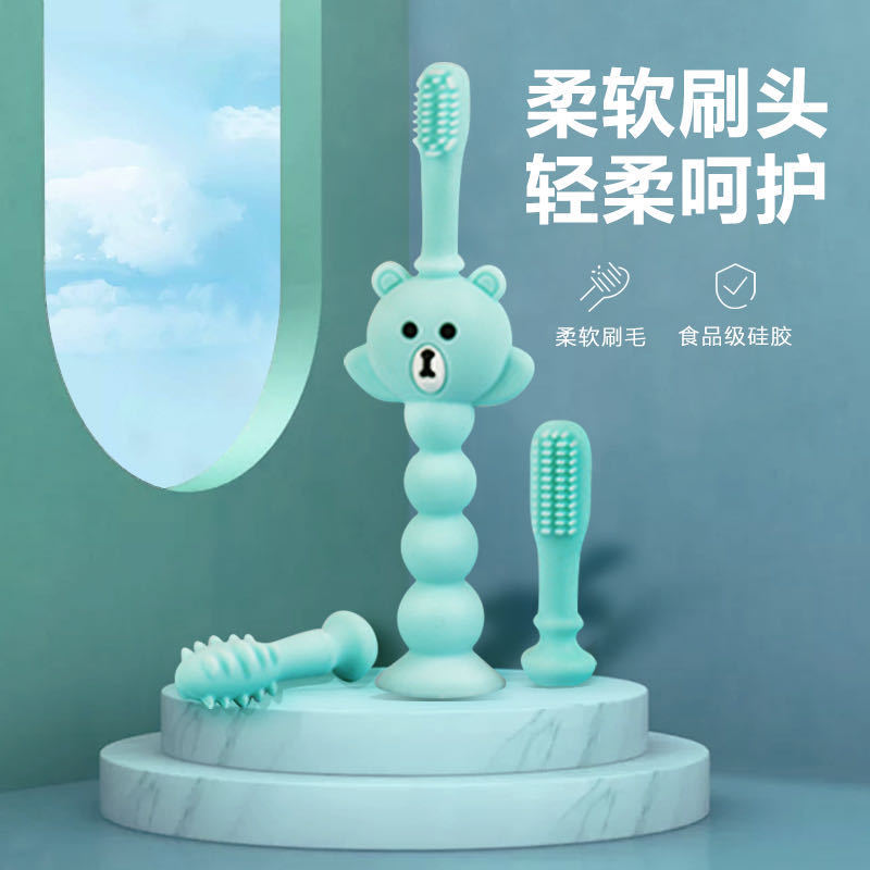 Small yellow duck-blue-single-mounted small yellow duck-yellow-single-mounted small yellow duck-pink-green -2 - packed silica gel training toothbrush-Coral Powder-Delivered Containing Box Silicone Gel Training Toothbrush-Gems Green -