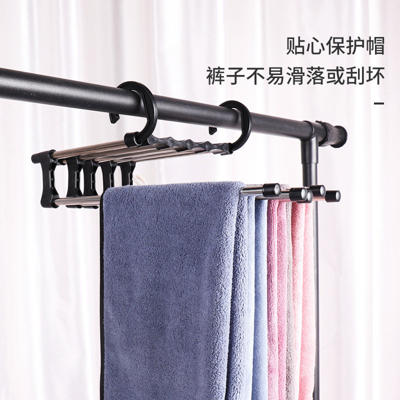 Telescopic folding magic pants rack Wardrobe storage artifact Multi-function multi-layer telescopic hanger Magic pants clip hanging pants