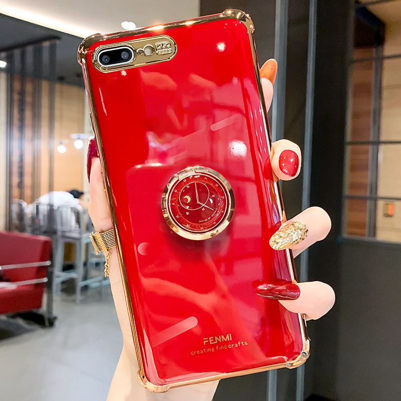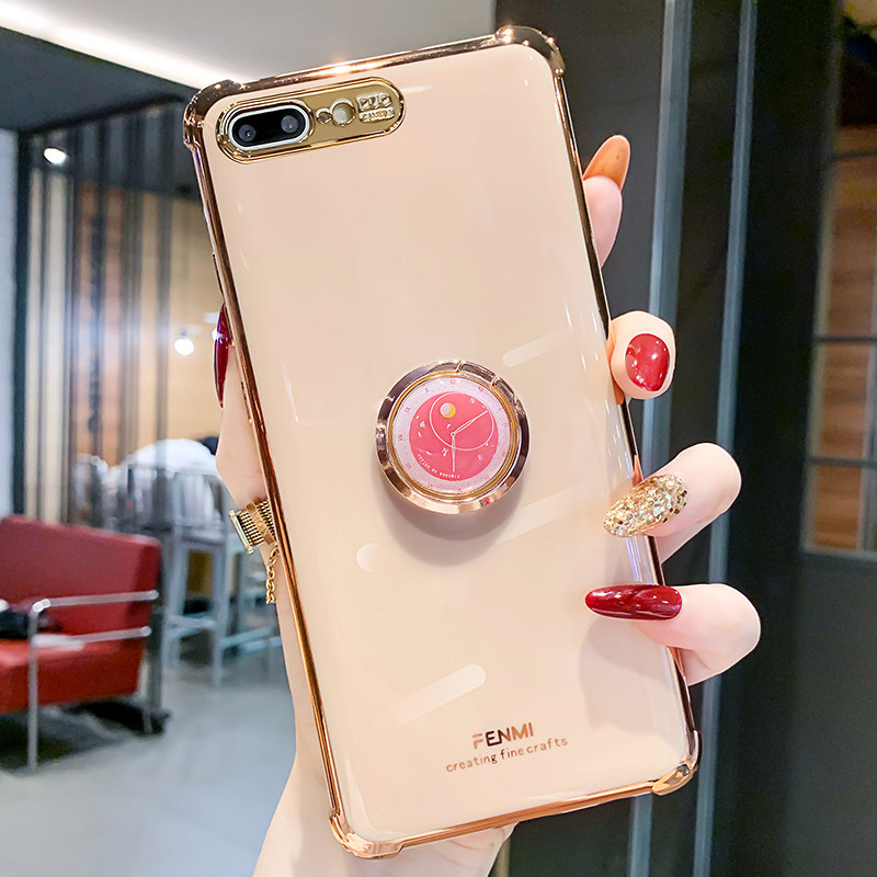 Applicable apple 7plus mobile phone protection shell plated silicone gel and watch bracket iphone8 protective shell ring buckle air bag anti-fall 8p protective sleeve camera full package lens 8p female seven i7 8 ip