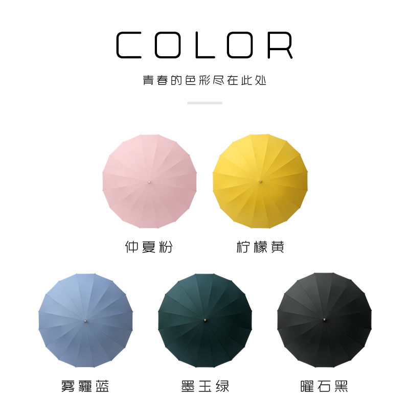 Japanese simple literary long handle 16 bone wind resistant dark green forest system fresh umbrella female sunny rain dual-purpose anti-ultraviolet rays