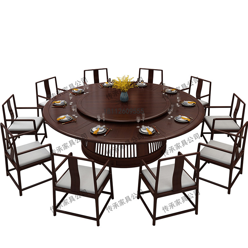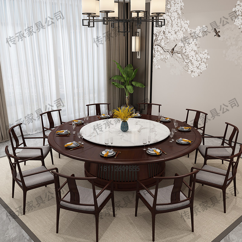 New Chinese electric solid wood dining table automatic turntable large round table hot pot table hotel hotel club box custom PA