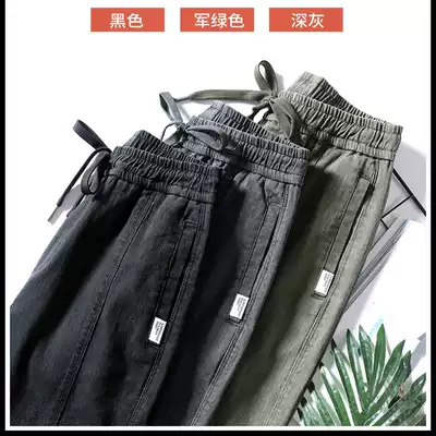 New jeans men's leg trousers Tide brand autumn Korean fashion stitching Harlan casual men's ankle-length pants