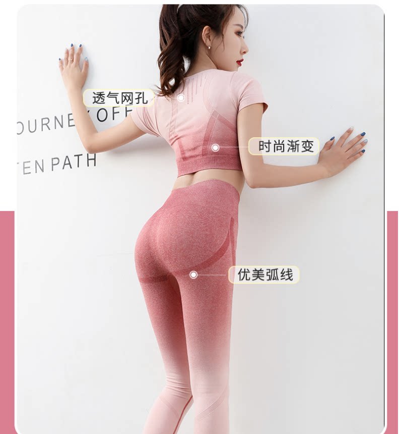 European and American yoga clothes sports two-piece suit women's summer running hanging dyed short-sleeved quick-drying elastic nine-point pants fitness clothes