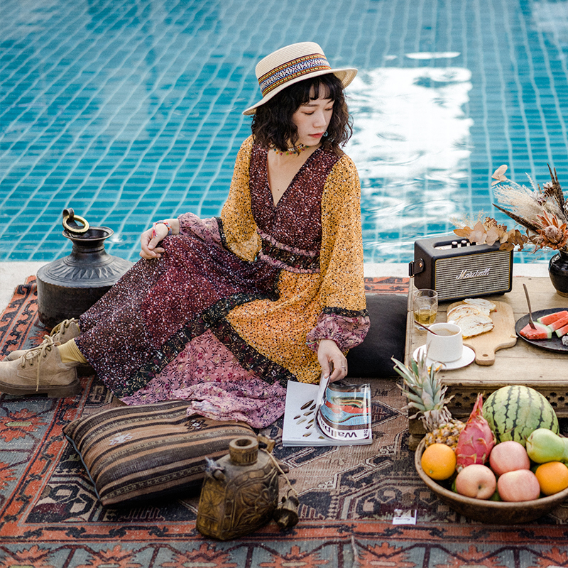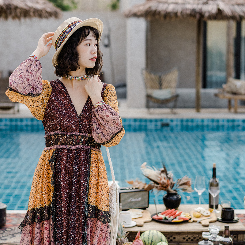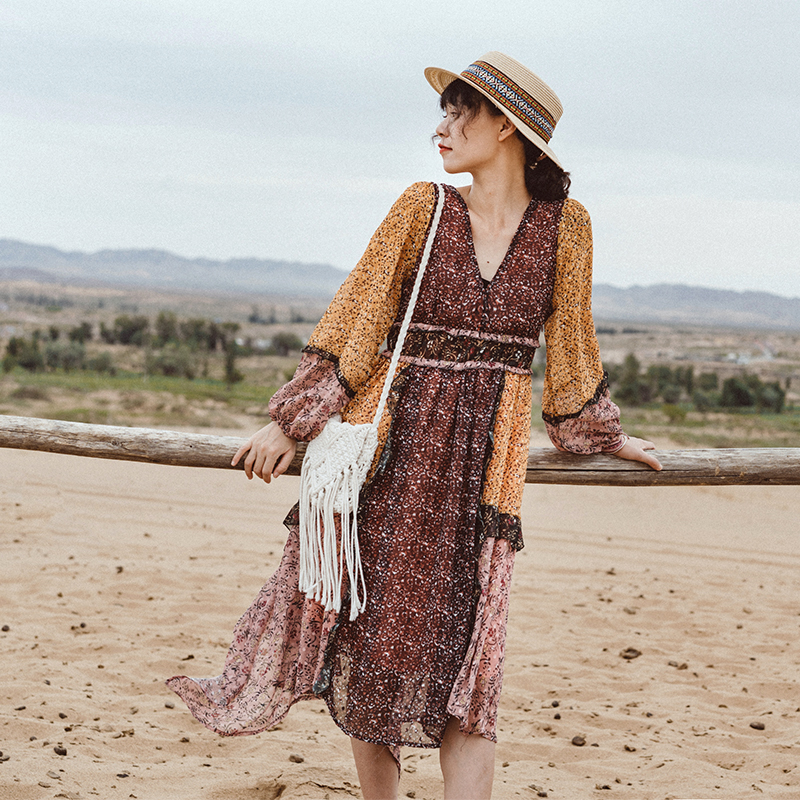 New holiday wind dress super fairy bohemian dress floral seaside desert Moroccan national wind autumn dress