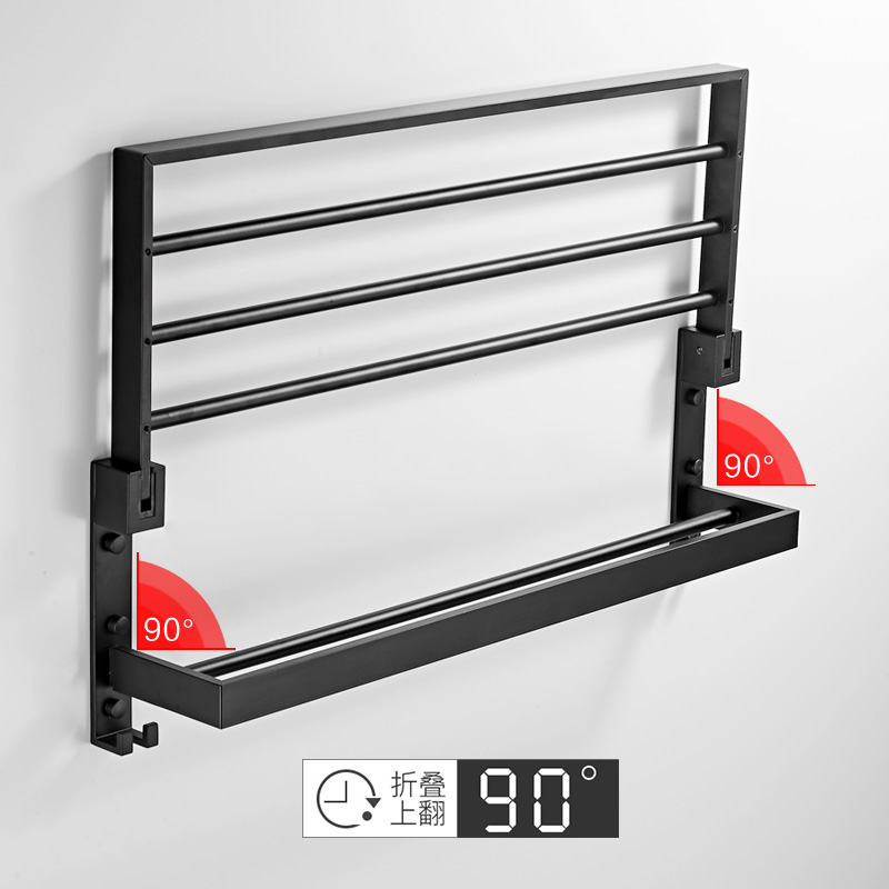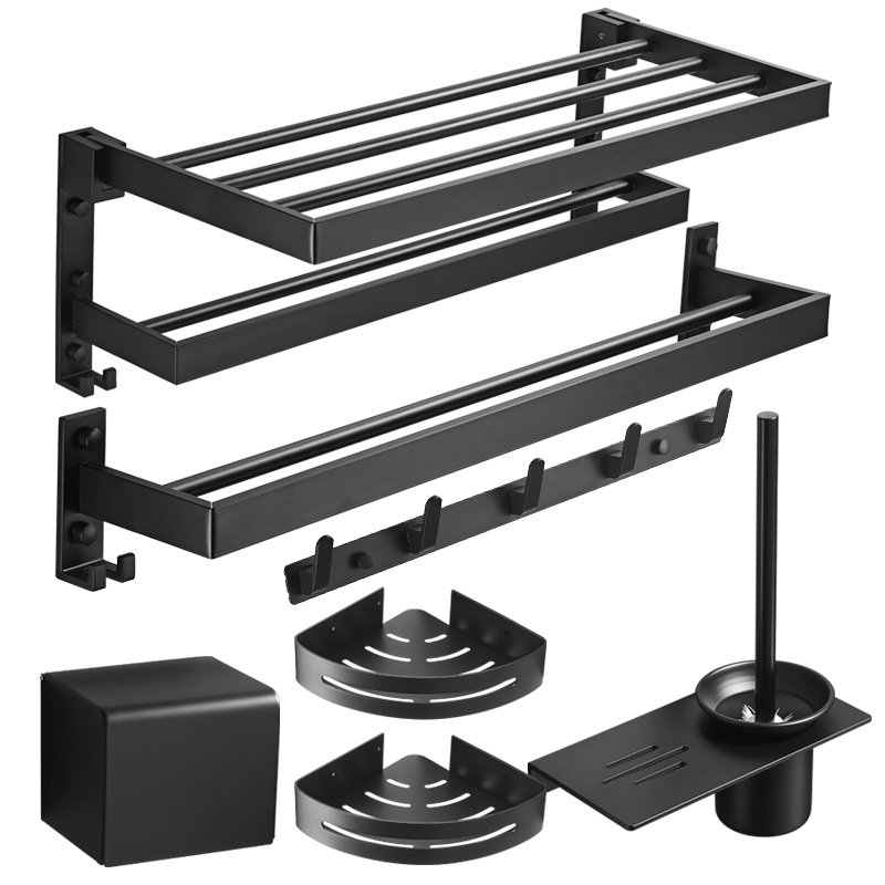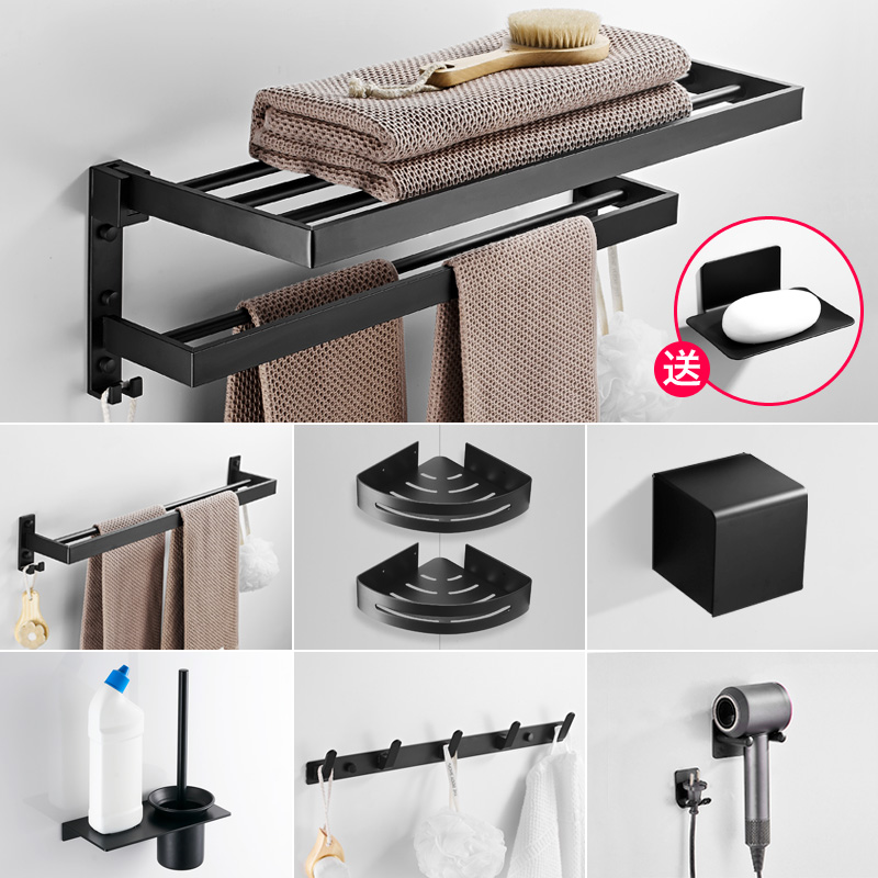 Black Punch-Free Towel Rack Towel Rack Space Aluminum Toilet Rack Bathroom Hardware Pendant Set