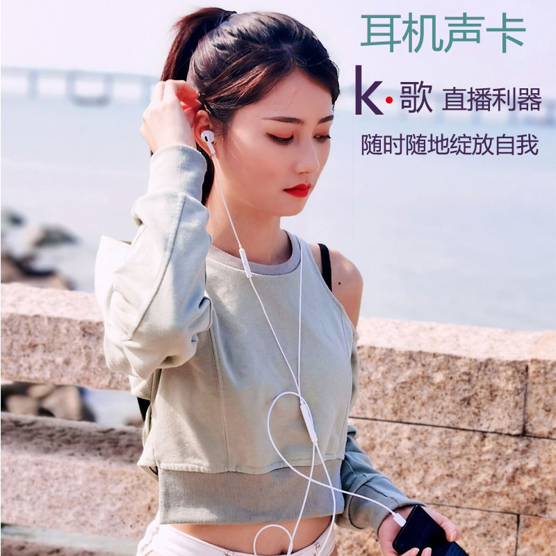 Popular K Songs Double Wheat Headset Sound Card Professional live In-ear Mobile Phone Sling Microphone Apple Singing Voice Recorder Special Sing, Cable HD Sound Quality Huawei Noise Reduction High Definition Integrated Ear