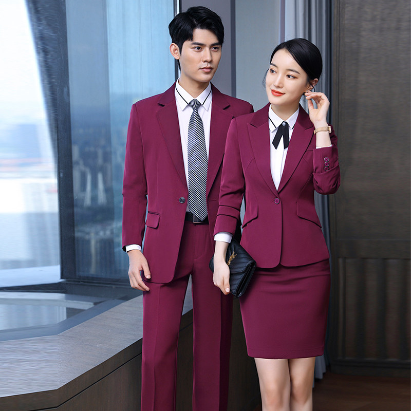 Positive Dress Woman Suit Suit for men and women with the same paragraph Work clothes Three sets Temperament Sample House Display Center Hotel Front Work Women