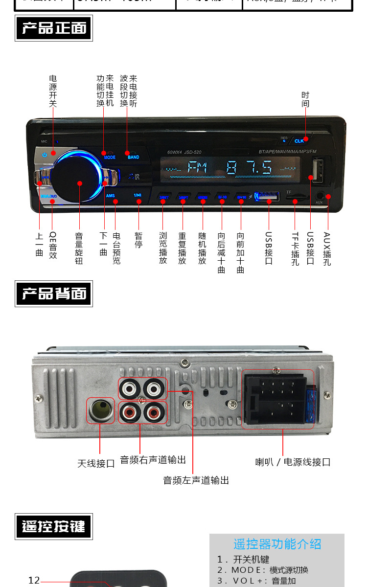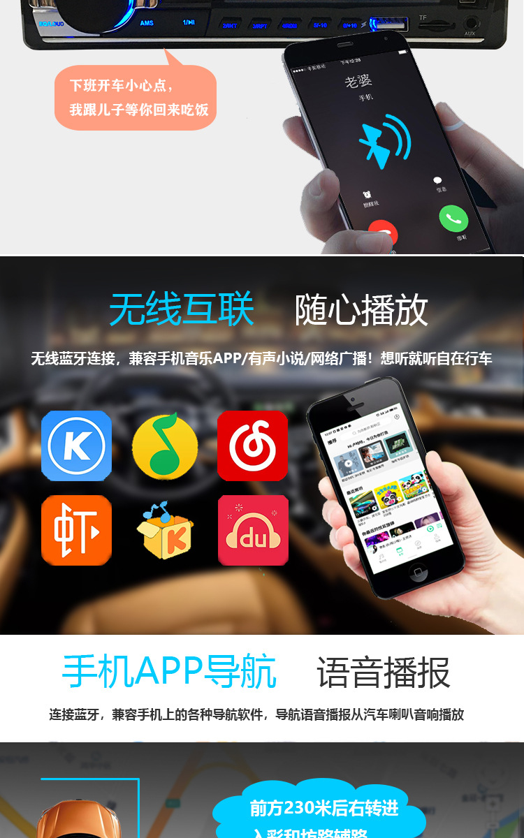 Car MP3 player 5 0 bluetooth phone card machine radio dual USB high-power car audio multi-function