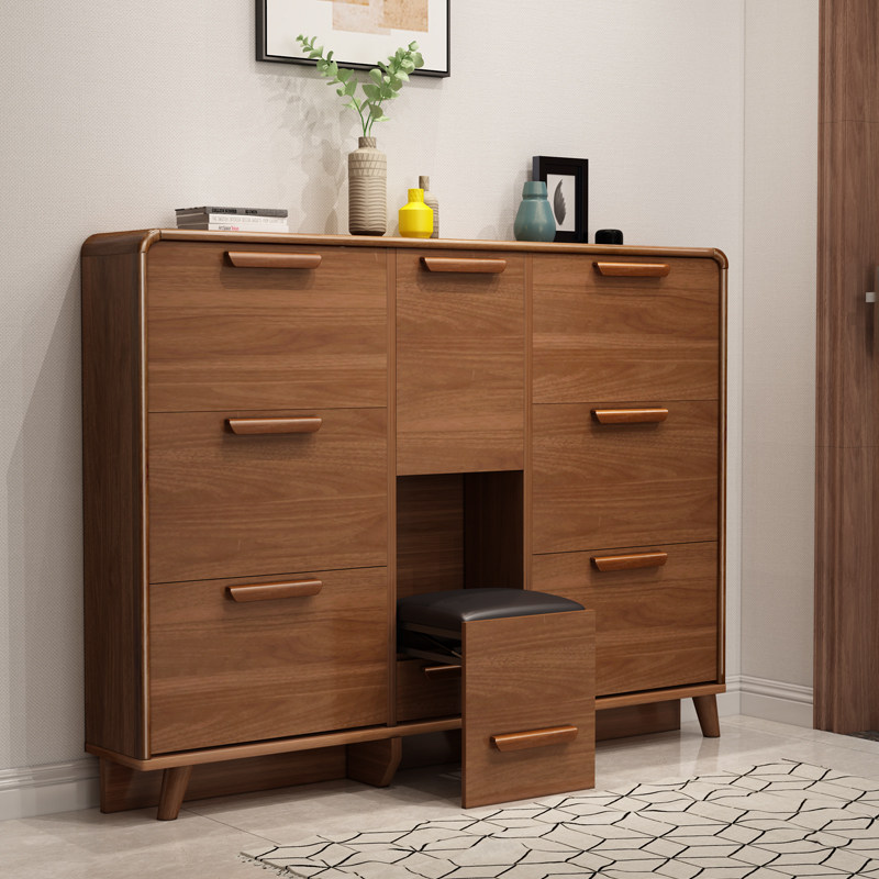 Solid wood frame ultra-thin tipping shoe cabinet simple modern home space saving door narrow shoe stool integrated hall storage