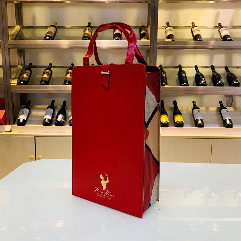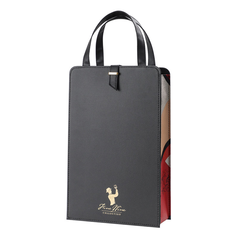 Red wine black red box gift box gift hand leather bag single double branch wine leather box universal