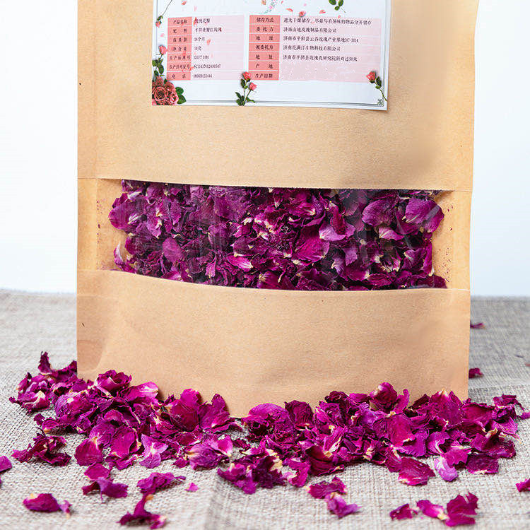 Flat Yin Edible Heavy Flap Red Rose Dry Petals Can Be Matched with Colla Cake Rose Vinegar Tea and other bagged 50g