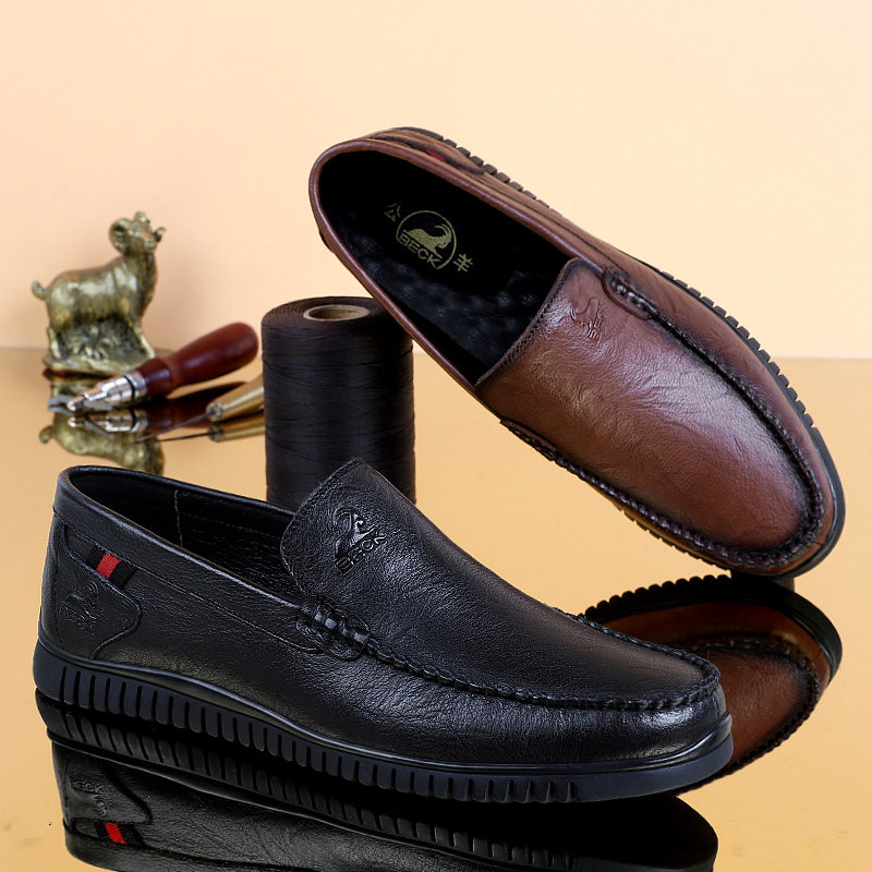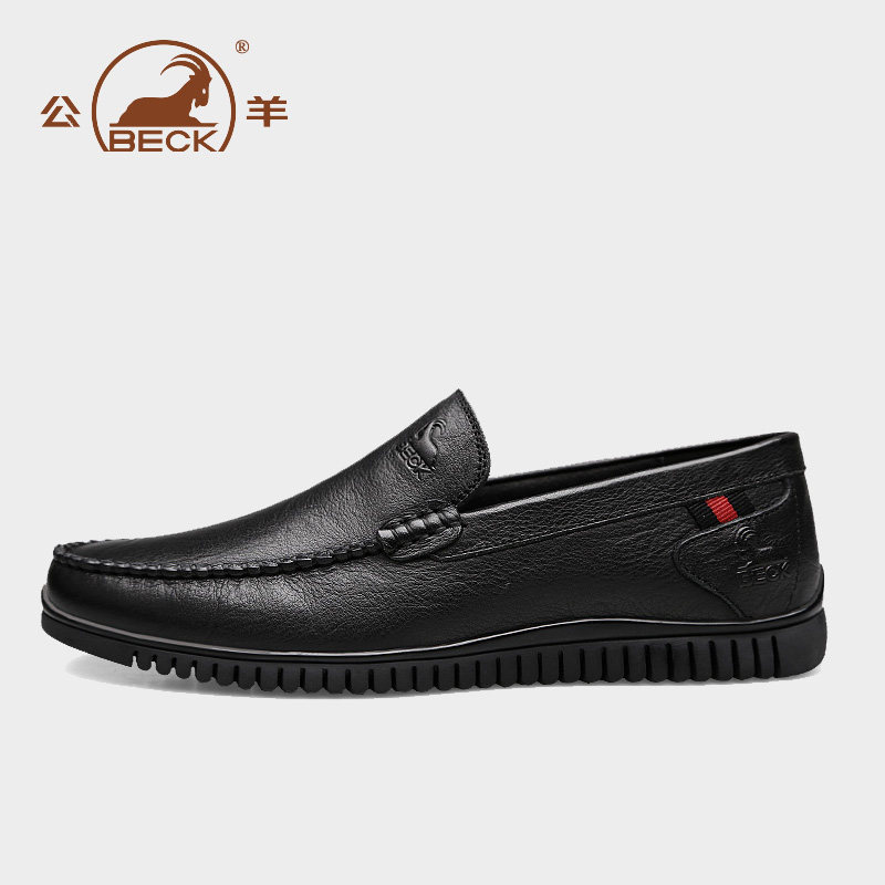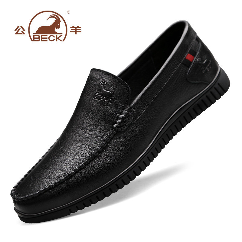 Rams leather shoes men's business formal British casual shoes black leather middle-aged dad shoes slip-on shoes