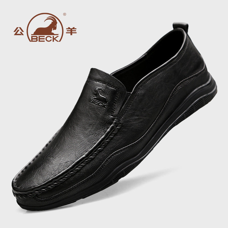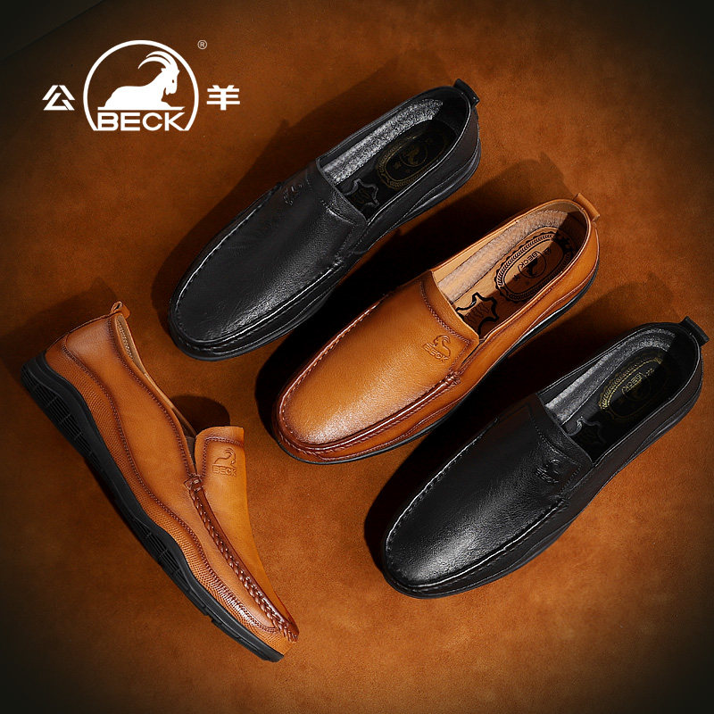 Ram dad shoes slip on autumn leather soft bottom men's casual leather shoes business first layer cowhide trend men's shoes