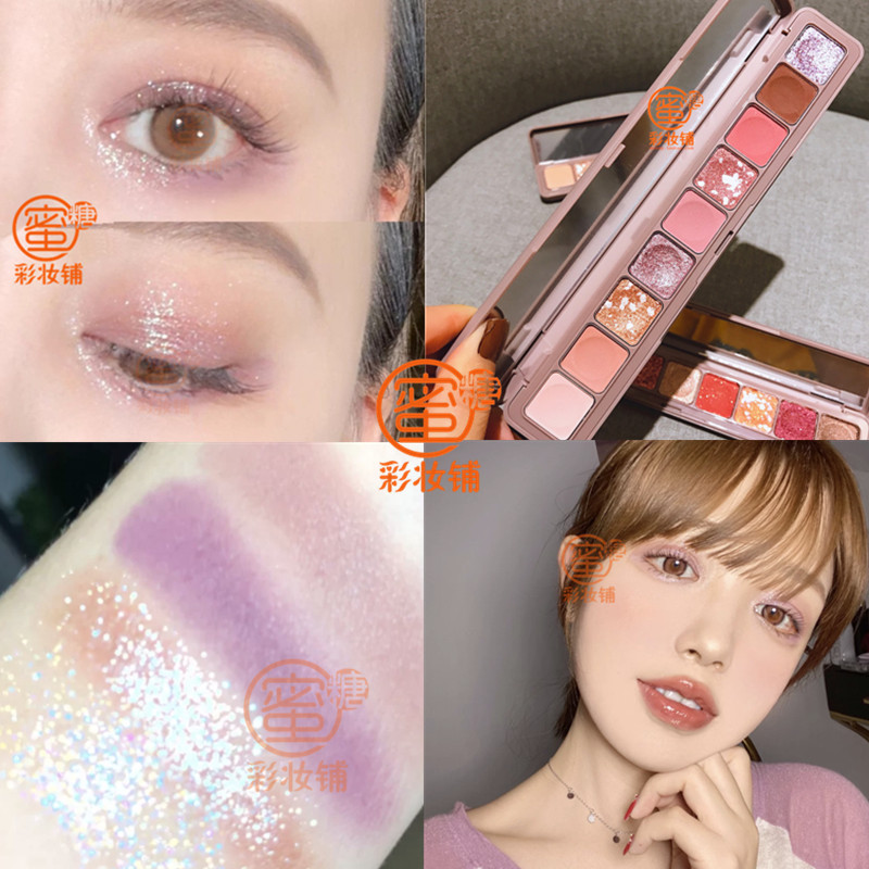 Purple elf 9-color eye shadow tray ins super fire flash powder sequins pearly bright crystal waterproof small tray portable
