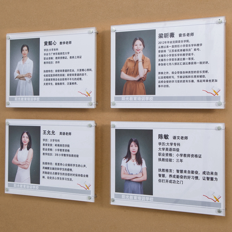 Kindergarten Teacher Profile Logo Wall Acrylic Teacher Introduction Photo Teacher Style Photo Frame Display Background Wall