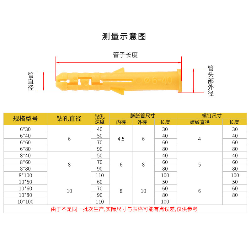 Small yellow croaker plastic roof expansion tube nylon rubber plug rubber plug anchor expansion screw nail nail M6 8 10mm