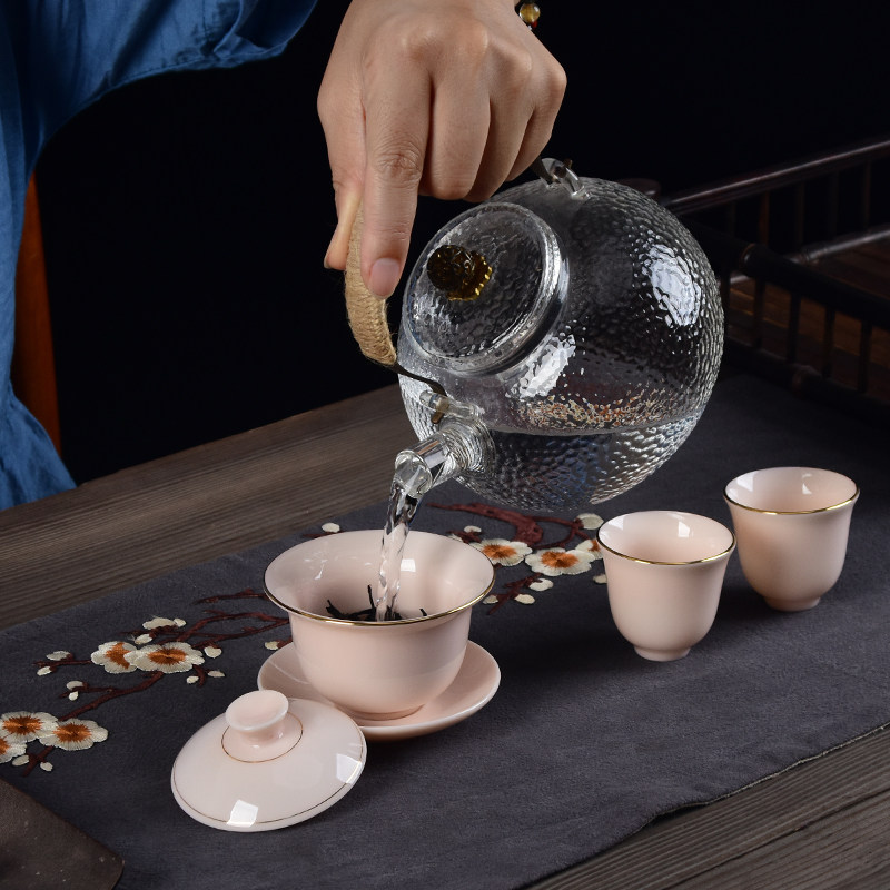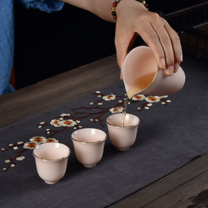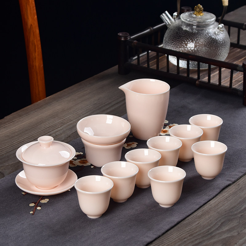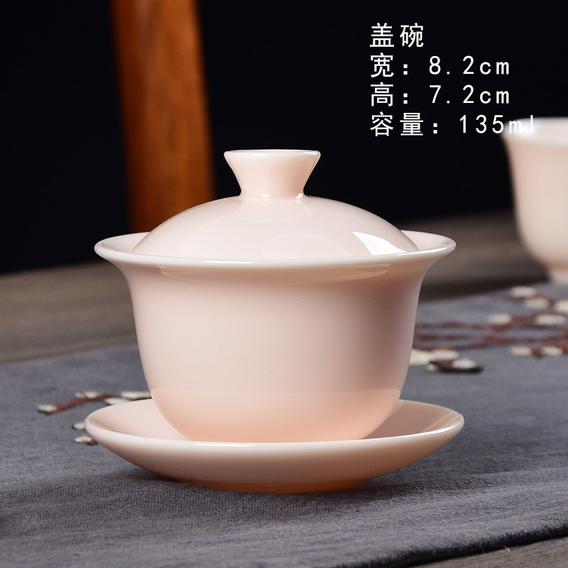 Pink Small Three Talents Covered Bowl Tea Cup Ceramic Tea Bowl Mutton Jade Kung Fu Tea Set Set Home Office Small Set